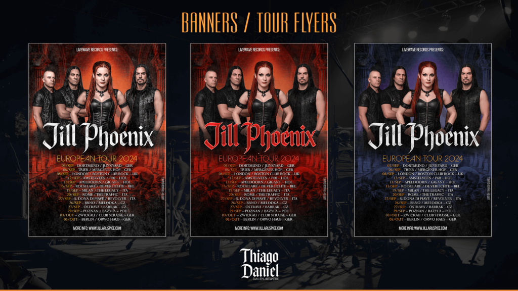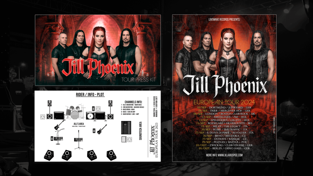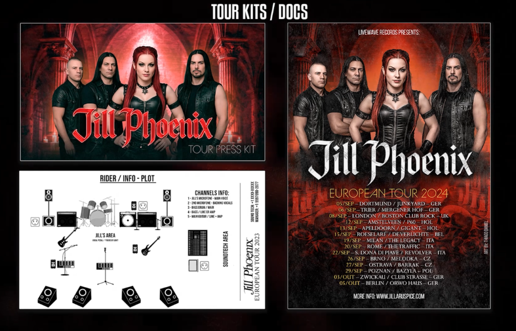 - Tour kits (Releases, Proposta Comercial/Patrocínios, Documentos Técnicos, Artes, Flyers personalizados, Social Mídia, entre outros)